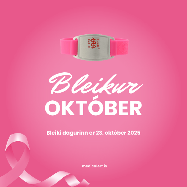 Það er nægur tími til að panta sér MedicAlert merki með bleikri ól fyrir bleika daginn sem er miðvikudaginn 23.október 2025.